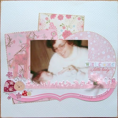 And the email entries keep rolling in!  This next entry is from Gail Tomkins, and Gail has created a gorgeous page layout with the colour challenge.  Gail's done a beautiful job of keeping the balance in the page with quite a few different embellishments, but still making the photo the focus of the page.  Brilliant work, Gail!